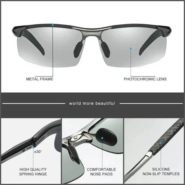 【 DAG OF NACHT, HET WERKT GOED】Onze zonnebrillen zijn gemaakt van speciale gepolariseerde lenzen. Als je 's nachts of in een donkere omgeving rijdt, zijn de lenzen helder en felgekleurd om het zicht te verbeteren en schitteringen effectief te verminderen. Overdag filteren ze effectief fel licht, verbeteren ze de gezichtsscherpte, verminderen ze vermoeidheid van de ogen en houden ze je ogen altijd in een comfortabele conditie voor buitenactiviteiten.