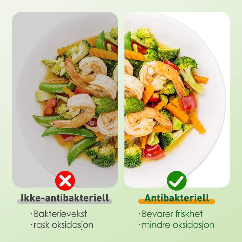 ANTIBAKTERIEEL EN FRISHEIDSBEVAREND: Deze deksels zijn voorzien van AG+ zilverion-actieve antibacteriële technologie en helpen het voedsel langer vers te houden door de groei van schadelijke bacteriën zoals E. coli en Candida albicans te voorkomen. Houdt rijst zacht, groenten vers en vis geurvrij!