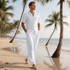 Ademend en comfortabel stof: gemaakt van een premium linnenmix, deze set houdt je koel en comfortabel bij warm weer. De lichtgewicht, luchtige stof is vocht weg, waardoor het ideaal is voor zomeruitjes of thuis loungen.
