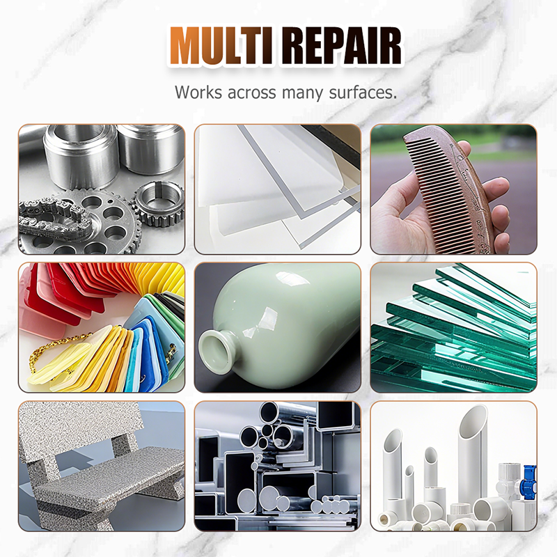 MULTIFUNCTIONELE REPARATIE: Werkt op vele materialen, waaronder schoenen, banden, keramiek, hout, metaal en kunststof, wat het een veelzijdige oplossing voor reparaties maakt.
