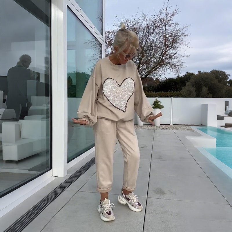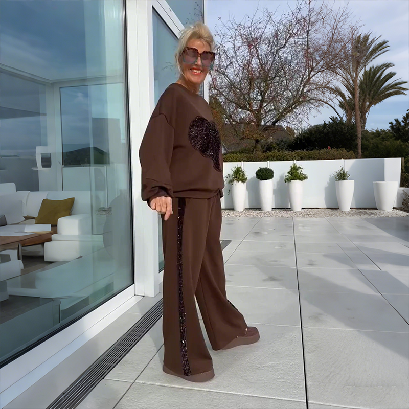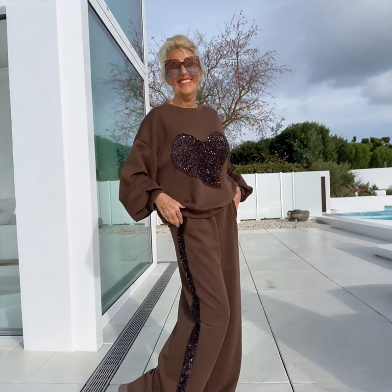 🎁Welkom Kerstmis met 50% korting!💥2-delige set van top en broek met paillettenharten voor dames