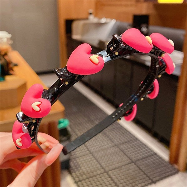 Onder normale omstandigheden kun je het overal dragen waar je kind het moet versieren; als je te maken hebt met pony's en gebroken haar, klem je het haar gewoon vast in de bovenste clip.