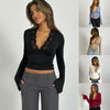 🔥Elegante diepe V-hals met kant afgezette slanke mouwtop